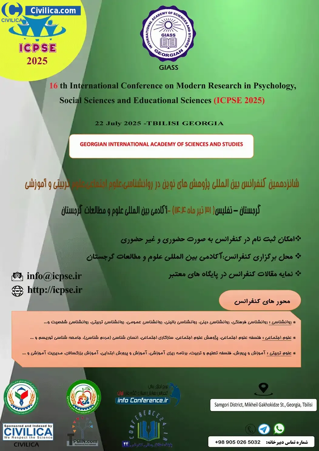 شانزدهمین کنفرانس بین المللی پژوهش های نوین در روانشناسی، علوم اجتماعی، علوم تربیتی و آموزشی